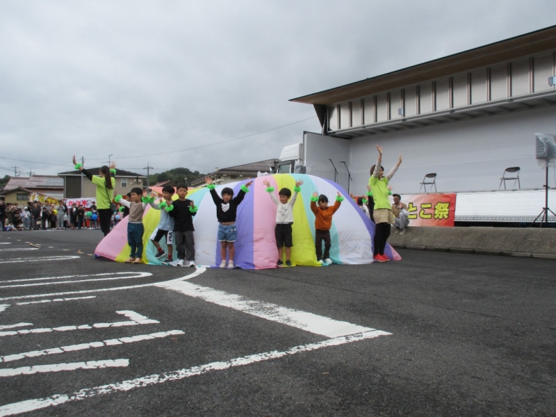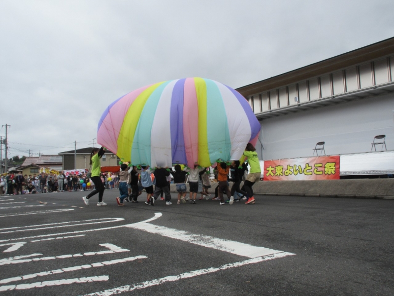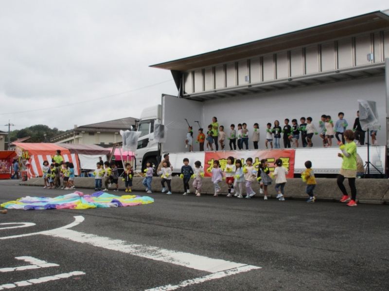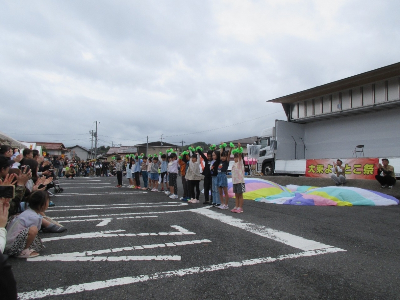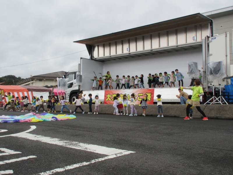 10月19日(日)に第43回大東よいとこ祭りのオープニングにめろん組(5歳児)とばなな組(4歳児)が参加をしました。毎年の恒例になっているオープニングへの参加ですが、今年は『それもいいね』のダンスとパラバルーンを披露しました。大勢の人の前で少し緊張気味の子どもたちでしたが、音楽が始まると大好きなダンスを笑顔いっぱいで踊っていました。パラバルーンでは一つ一つの子どもたちの動きに「おぉ~」と歓声が上がり、会場が盛り上がっていました。お客さんからたくさんの拍手をもらい、とっても嬉しいオープニングになりました。